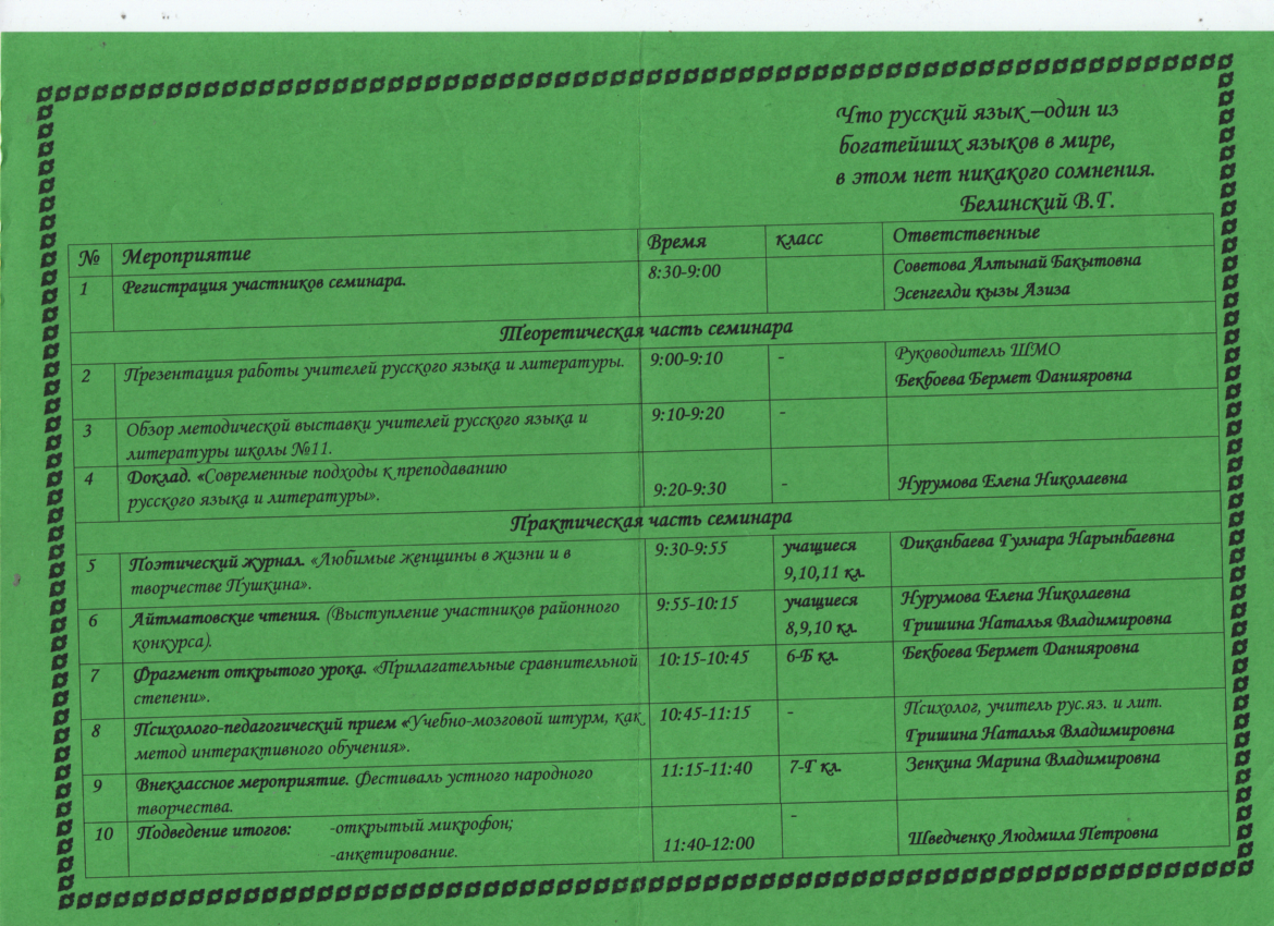 Учителями ШМО «Филолог» был проведён семинар на тему: «Окуп- түшүнүү компетент түүлүгү».