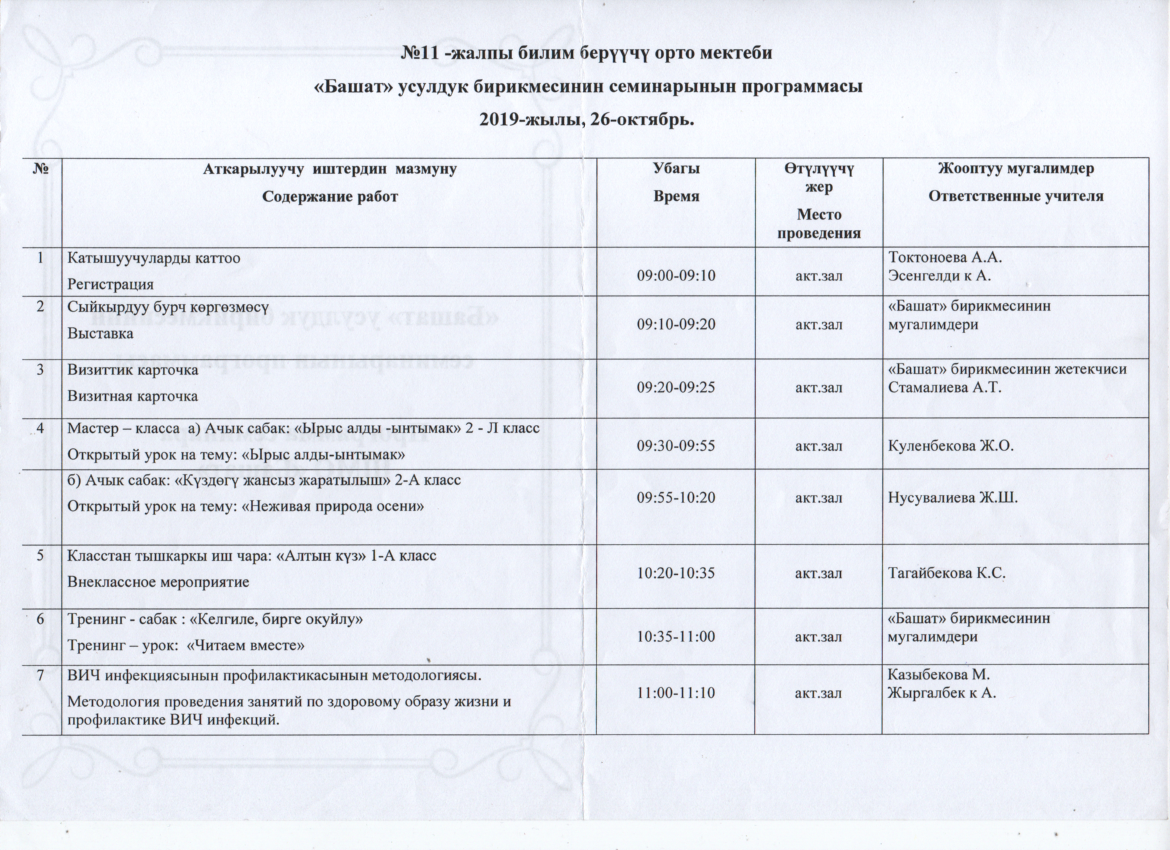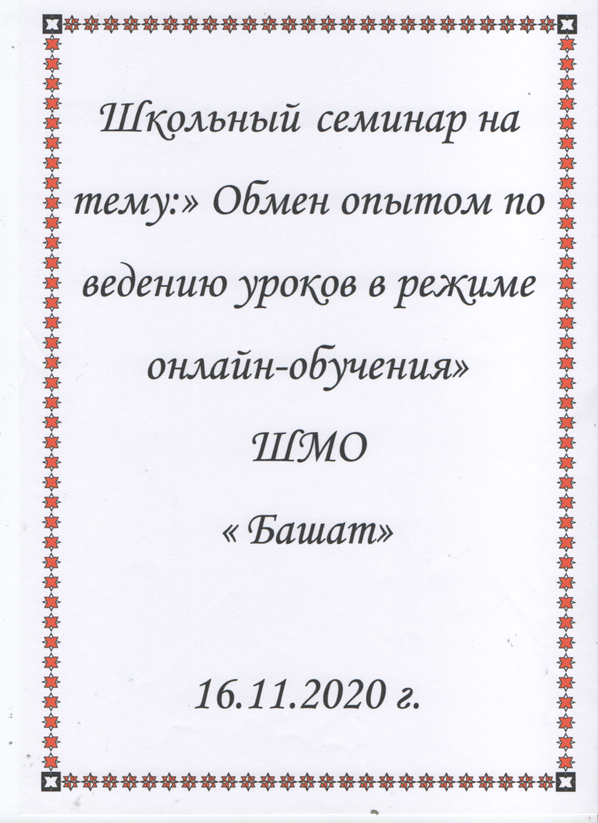 - « Обмен опытом по ведению уроков в режиме онлайн-обучения» ШМО «Башталгыч»(начальные классы с кыргызским языком обучения). Присутствовали 80 учителей;