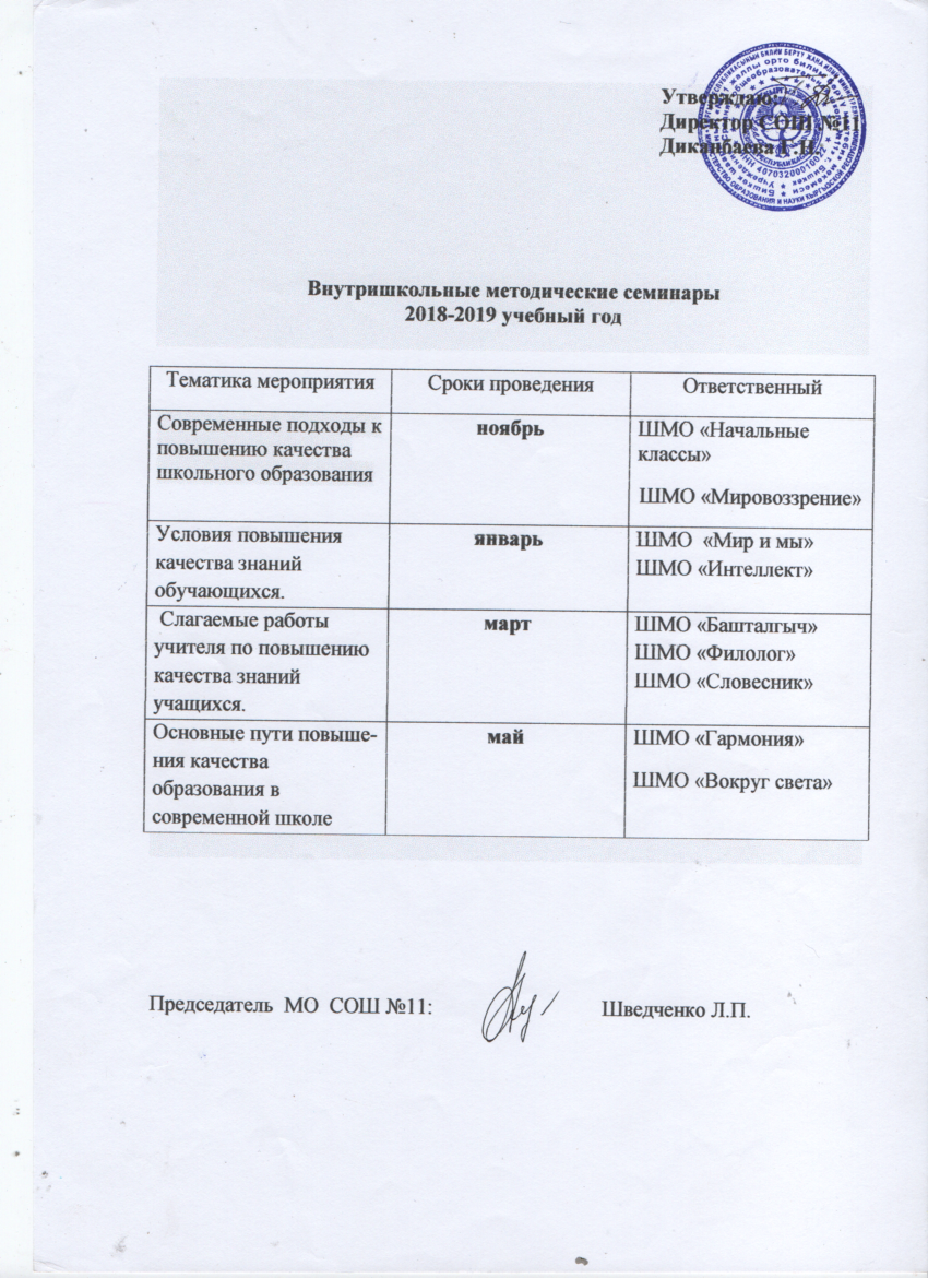 | № п/п | Название ШМО | Тема семинара | Сроки проведения |