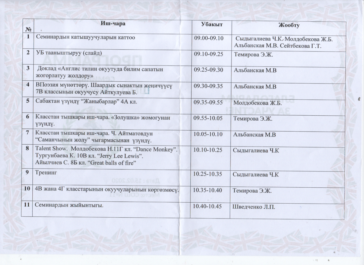 14.02.2022 года учителями ШМО «Вокруг света» был проведён семинар на тему: «Мугалимдин сабак етүүдөгү креативдуулугу».