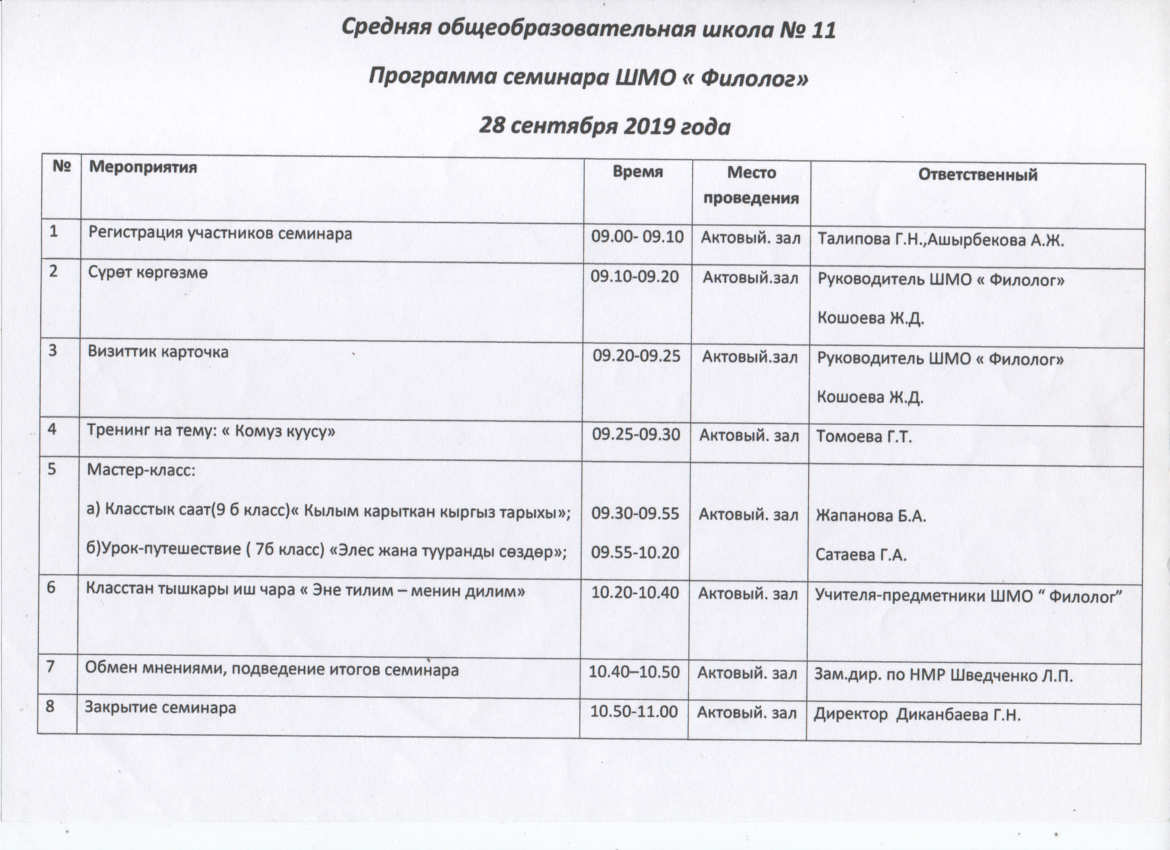 01.10.2021 года учителями ШМО « Филолог» был проведён школьный семинар-тренинг на тему: Мамлекеттик тилдин өнүгүшүнө « Кыргыз тесттин» мааниси.